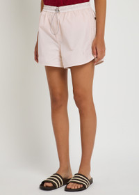 Info & Care Adidas X Wales Bonner nylon shorts Toggle fastening at elasticated waist, press-stud fastening sides, stripes through sides, logo embroidery at curved hem,;elasticated brief lining Pull on 100% recycled polyamide; lining: 100% cotton Machine wash Size & Fit Length waist to hem: 12.5 inches/ 31.5cm Midweight Slightly baggy;fit Model is 5'9"/ 175cm and wears a size small
