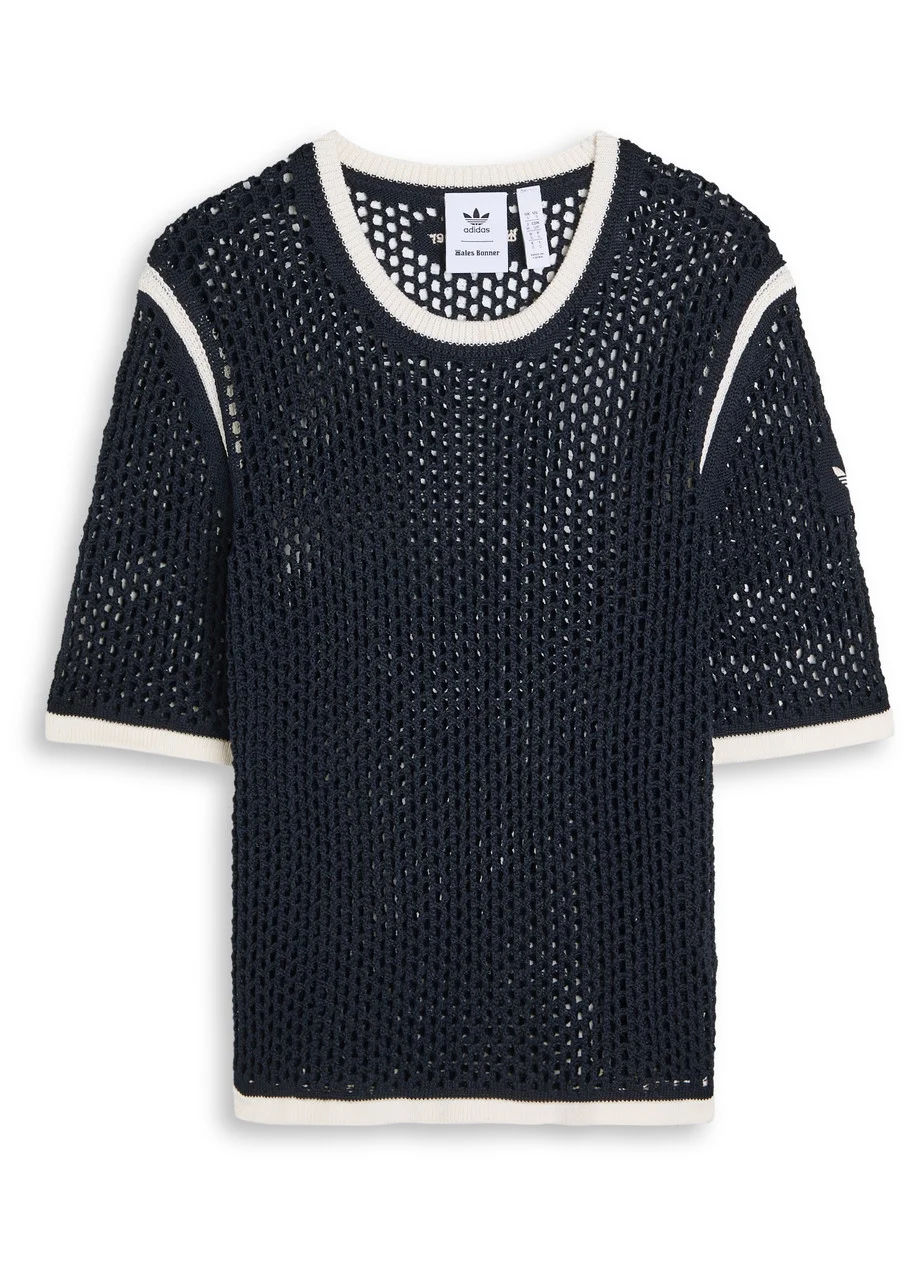 Info & Care Adidas X Wales Bonner open-knit T-shirt Crew-neck, logo embroidery at sleeve and back neck, contrasting ribbed trims Slips on 60% cotton, 40% recycled polyester Machine wash Size & Fit Length shoulder to hem: 24 inches/ 61cm Midweight Relaxed fit Model is 5'9"/ 175cm and wears a size small