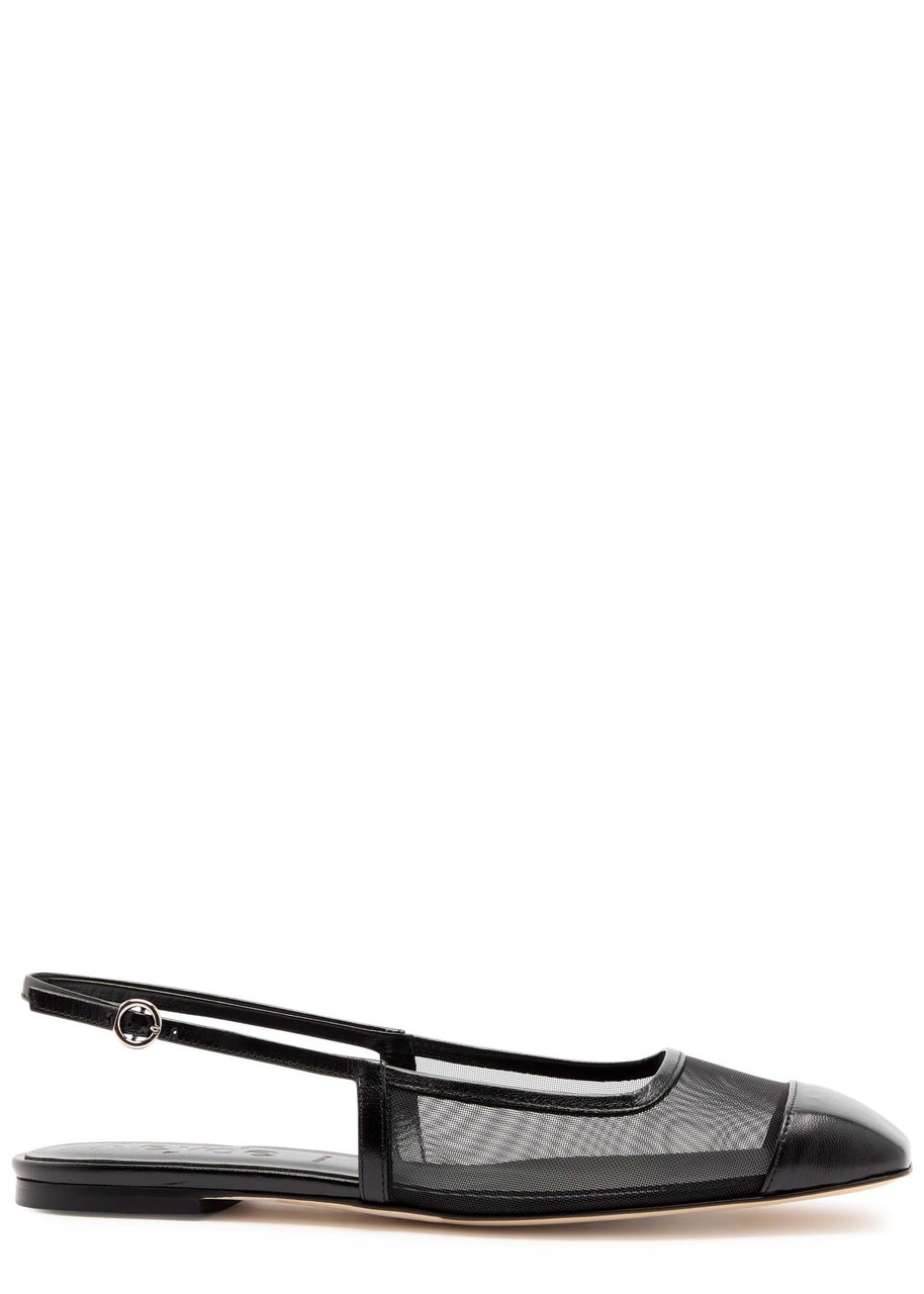 Geraldine leather-trimmed mesh slingback ballet flats Black
