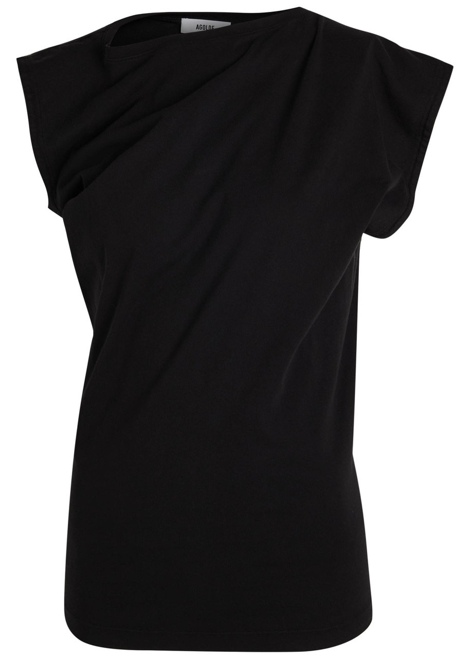 Info & Care Agolde;cotton T-shirt Asymmetric crew-neck,;darted back, draped and gathered details Slips on 100% organic cotton Hand wash Size & Fit Length shoulder to hem: 25.5 inches/ 65cm Midweight Loose fit Model is 5'9"/ 175cm and wears a size small