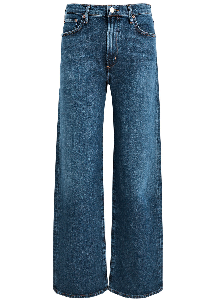 Info & Care Agolde stretch-denim jeans Mid-rise fit, relaxed straight-leg cut, belt loops, five pockets, designer-engraved studs and hardware, faded finish Concealed zip and button fastening at front 88% cotton, 11% post consumer recycled cotton, 1% elastane Machine wash cold inside out to avoid colour transfer Size & Fit Front rise: 11 inches/ 28cm Inside leg length: 31 inches/ 78.5cm Midweight Model is 5'10"/ 178cm and wears a size W27