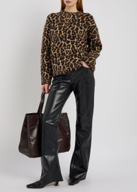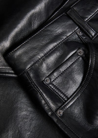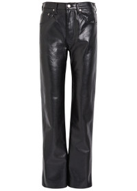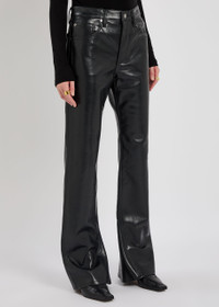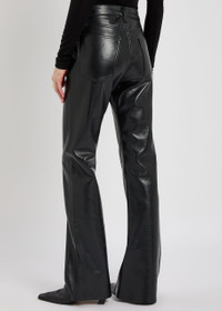 Info & Care Agolde leather trousers Belt loops, three front slip pockets, two back patch pockets, partially lined Partially concealed button and zip fastening at front 50% recycled leather, 30% polyurethane, 10% viscose, 10% polyester; lining: 95% polyester, 5% elastane Dry clean Size & Fit Inside leg length: 32 inches/ 81.5cm Midweight Bootcut, mid-rise fit Model is 5'9"/ 175cm and wears a size;W27