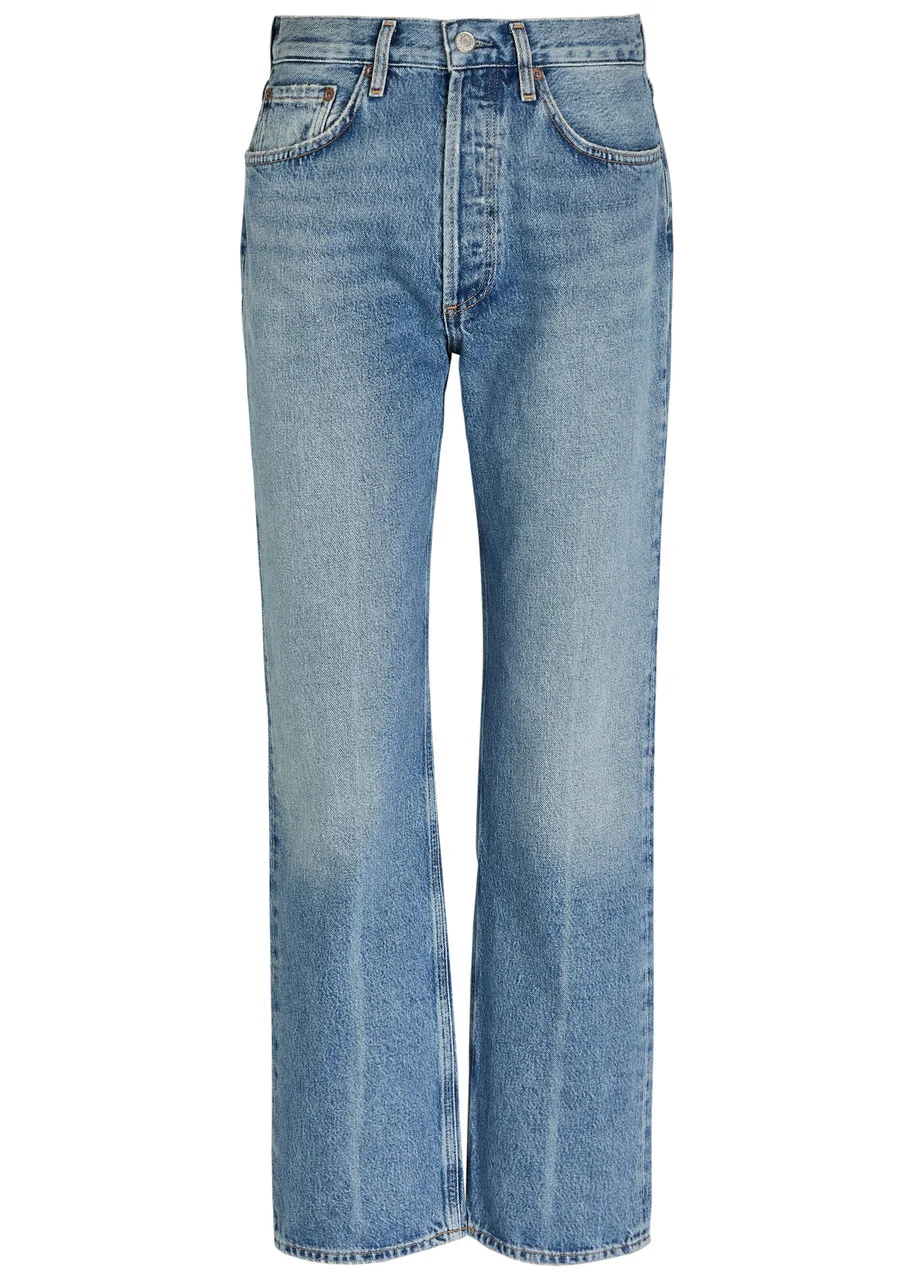 Info & Care Agolde denim jeans High-rise fit, straight-leg cut, belt loops, five pockets, distressed and washed finish Partially concealed button fastenings through front 100% regenerative cotton Machine wash cold inside out to avoid colour transfer Size & Fit Front rise: 11.5 inches/ 29cm Inside leg length: 30 inches/ 76cm Midweight Model is 5'10"/ 178cm and wears a size;W27
