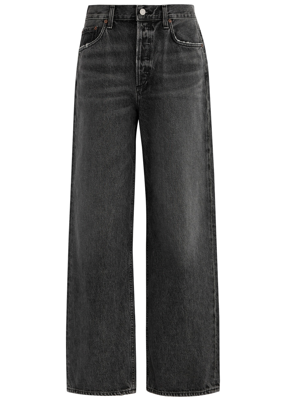 Info & Care Agolde denim jeans Low-rise fit, wide-leg cut, belt loops, five pockets, whiskered, designer-engraved hardware, distressed and faded finish Partially concealed button fastenings at front Designer wash:;Spirit 100% regenerative cotton Machine wash cold inside out to avoid colour transfer Size & Fit Front rise: 12 inches/ 30.5cm Inside leg length: 29.5 inches/ 75cm Midweight Model is 5'9"/ 175cm and wears a size W27