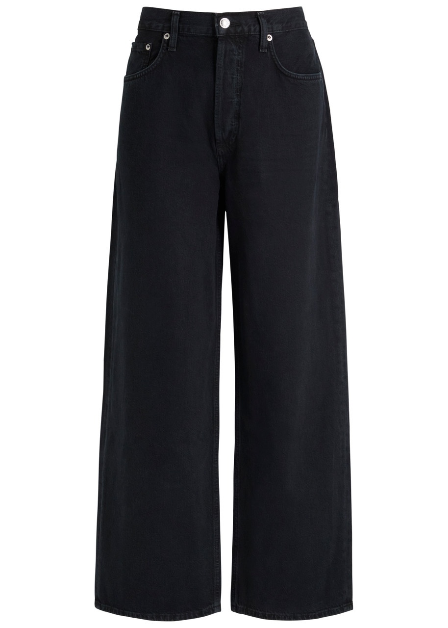 Info & Care Agolde denim jeans Low-rise fit, wide-leg cut, belt loops, five pockets, designer-engraved hardware, faded finish Partially concealed button fastenings at front Designer wash:;Crushed 100% regenerative cotton Machine wash cold inside out to avoid colour transfer Size & Fit Front rise: 11.5 inches/ 29cm Inside leg length: 30.5 inches/ 77.5cm Midweight Model is 5'9"/ 175cm and wears a size W27