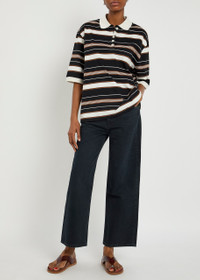 Info & Care Agolde denim jeans; High-rise fit, wide-leg cut, belt loops, five pockets, designer-engraved hardware, whiskered, faded finish Partially concealed button and zip-fastening at front; Designer wash:;Scowl 100% organic cotton Machine wash cold inside out to avoid colour transfer Size & Fit Front rise: 12 inches/ 30.5cm Inside leg length: 27 inches/ 69cm Midweight; Model is 5'9"/ 175cm and wears a size W27
