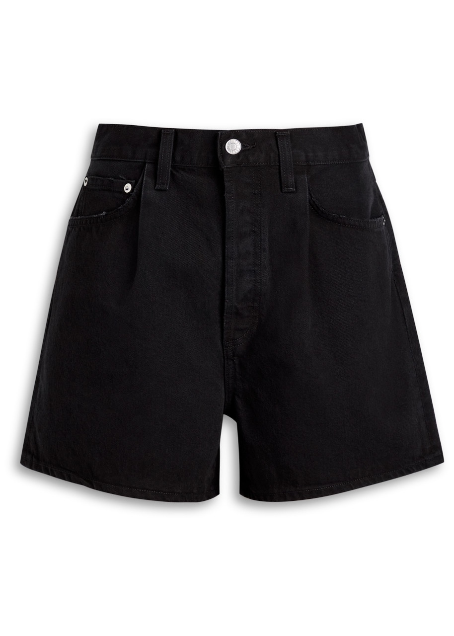 Info & Care Agolde denim shorts Belt loops, five pockets, pleats at front waist, designer hardware Partially concealed button fastenings through front 67% organic cotton, 22% recycled lyocell, 11% post consumer recycled cotton Machine wash cold inside out to avoid colour transfer Size & Fit Length waist to hem: 15 inches/ 38cm Midweight High-waisted, baggy fit Model is 5'10"/ 178cm and wears a size;W27
