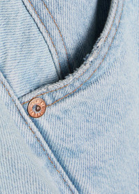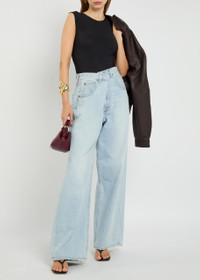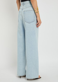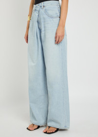 Info & Care Agolde denim jeans; Mid-rise fit, wide-leg cut, hook-fastening fold-effect at front closure, belt loops, five pockets, distressed details, designer-engraved hardware, whiskered, faded finish Partially concealed button and zip-fastening at front; Designer wash: Spark 100% regenerative cotton Machine wash cold inside out to avoid colour transfer Size & Fit Front rise: 13 inches/ 33cm Inside leg length: 32 inches/ 81.5cm Midweight; Model is 5'9"/ 175cm and wears a size W27