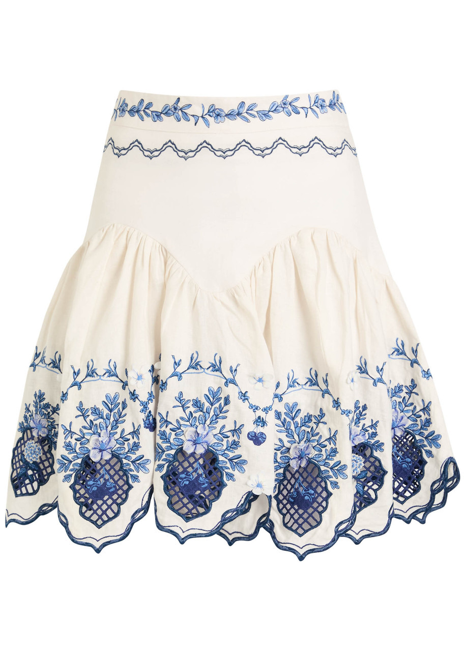 Agua BY Agua Bendita Asai Wild Embroidered Linen Mini Skirt