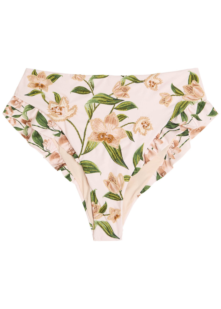Info & Care Agua by Agua Bendita;stretch-polyester bikini;briefs Floral embroidery and print, elasticated trims, bead embellishments, frilled trims, fully lined Pull on 84% recycled polyester, 16% elastane; lining: 78% polyamide, 22% elastane Machine wash Coordinating items available Size & Fit High-rise fit Model is 5'9"/ 175cm and wears a size small