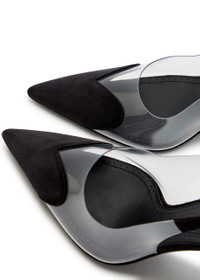 Info & Care Alaia suede slingback pumps Heel measures approximately 3.75 inches/ 90mm PVC panel, heart panel at pointed toe; Adjustable buckle-fastening slingback strap Presented in a designer-stamped box Size & Fit Only available in full sizes, go up to the nearest whole size if you take a half size