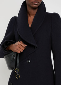 Info & Care Alaia wool coat Shawl lapels, padded shoulders, side slip pockets, fully lined Assymetric button fastenings at front 100% wool; lining: 100% cupro Dry clean Size & Fit Length shoulder to hem: 51 inches/ 129.5cm Heavyweight Regular fit, straight cut Model is 5'9"/ 175cm and wears a size;FR38
