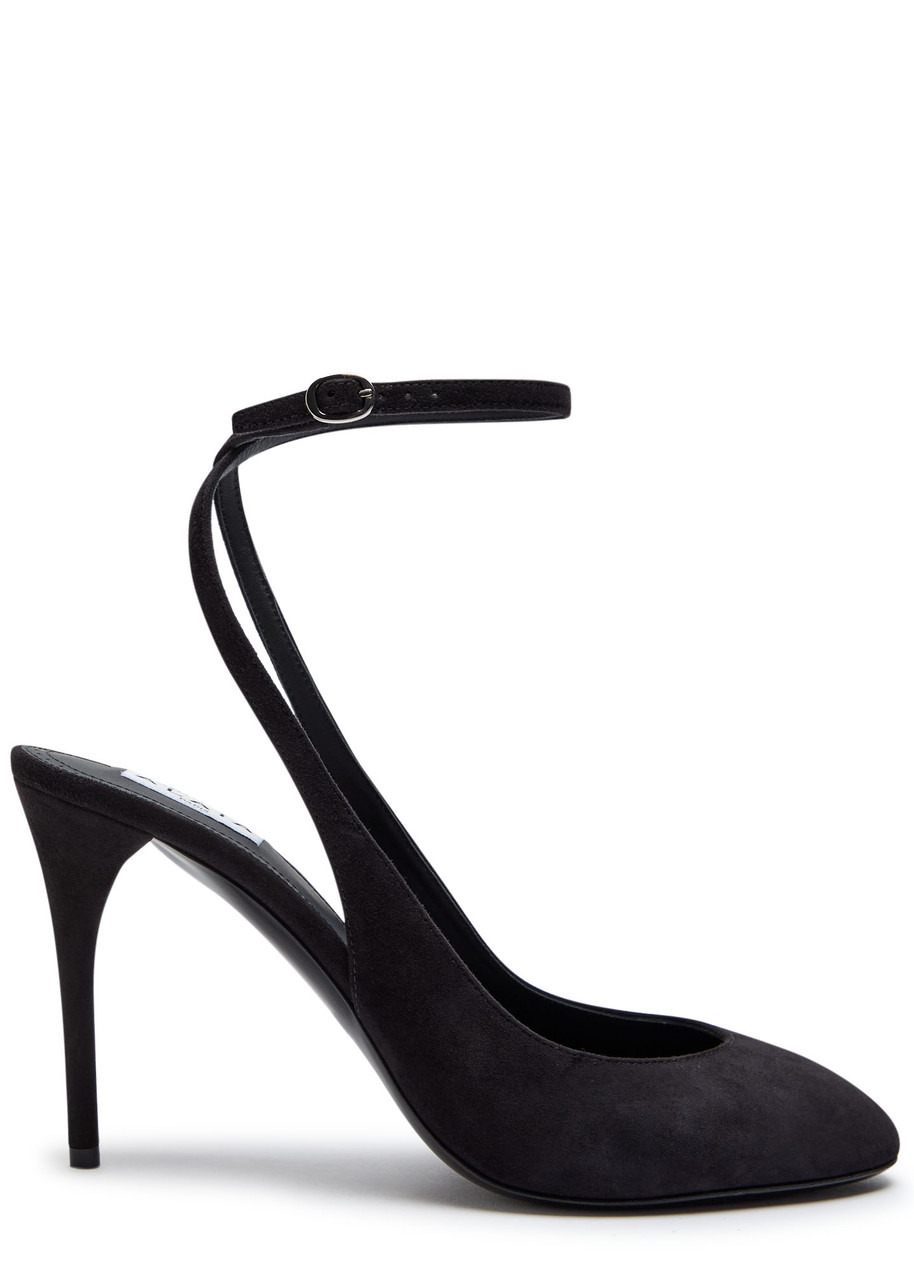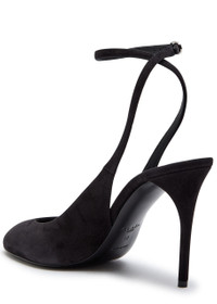 Info & Care Alaia suede slingback pumps Heel measures approximately 3.75 inches/ 90mm Wrap-around ankle strap, almond toe Adjustable buckle-fastening slingback strap Presented in a designer-stamped box Size & Fit Only available in full sizes, go up to the nearest whole size if you take a half size