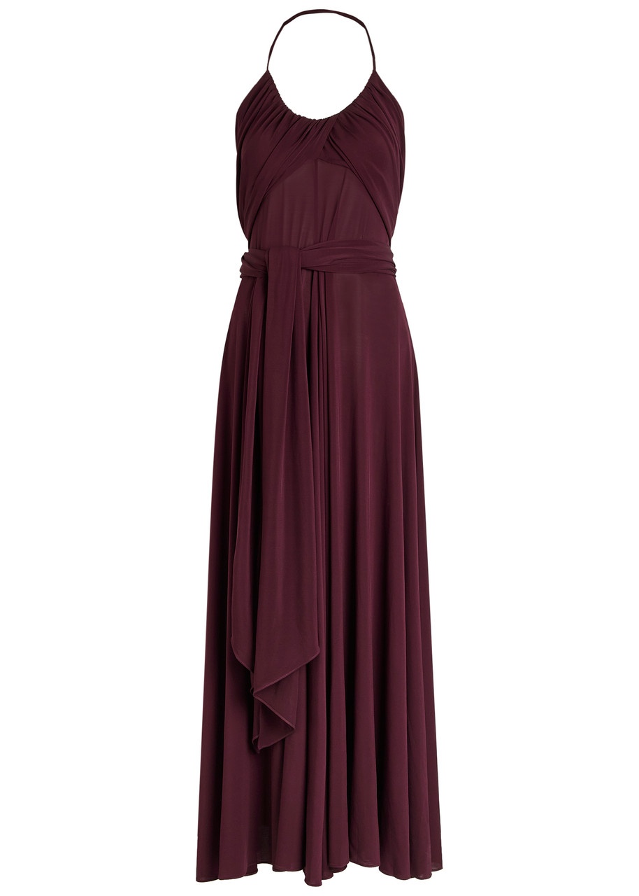Info & Care Alaia stretch-mesh dress Draped design, gathered halterneck,;waist ties,;low back; Slips on 96% viscose, 4% elastane Dry clean Size & Fit Length shoulder to hem: 53.5 inches/ 136cm Midweight Loose fit, use ties to cinch waist Model is 5'9"/ 175cm and wears a size;FR36;