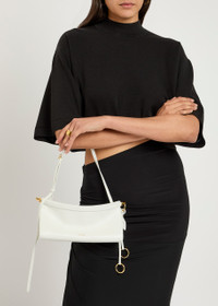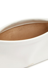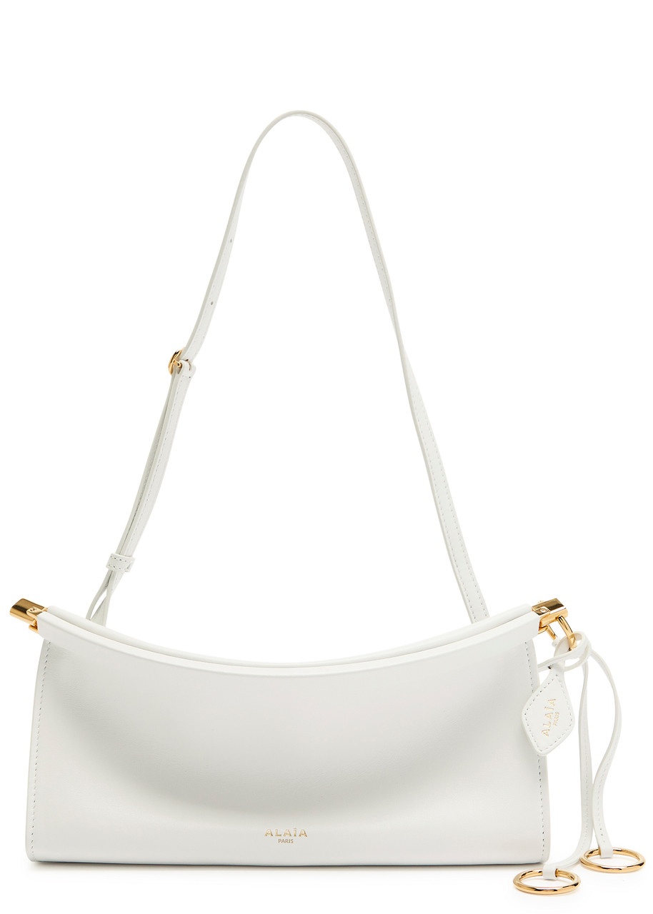 Info & Care Alaia leather shoulder bag; Adjustable top handle strap, metallic designer stamp, keychain embellishment, fully lined Magnetic fastening;top Size & Fit Width: 10 inches/ 25.5cm Height: 5 inches/ 12.5cm Depth: 3 inches/ 7.5cm Top handle drop: 9 inches/ 23cm