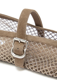 Info & Care Alaia mesh ballet flats; Crystal embellishments, suede trims, rubber sole, round toe; Adjustable buckle-fastening strap Size & Fit Only available in full sizes, go up to the nearest whole size if you take a half size;