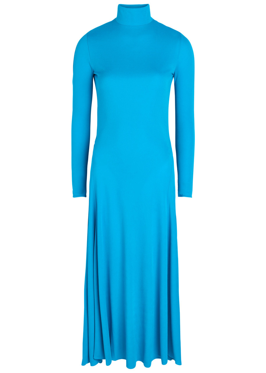 Info & Care Alaia crepe dress Turtle-neck, heart cut-out open back, internal bodysuit base, partially lined Concealed zip fastening at;shoulder and press-stud fastenings at base 100% viscose Dry clean Size & Fit Length shoulder to hem: 51 inches/ 129.5cm Midweight Slim bodice fit, loose from the hips A-line cut Model is 5'10"/ 178cm and wears a size;FR36