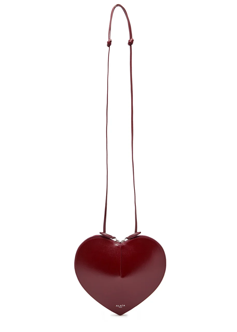 Info & Care Alaia leather cross-body bag; Adjustable shoulder strap, heart design, designer stamp, fully lined Two-way zip fastening across top Size & Fit Width: 8.25 inches/ 21cm; Height: 7.5 inches/ 19cm; Depth: 1 inch/ 2.5cm; Min. shoulder strap drop: 13 inches/ 33cm Max. shoulder strap drop:;26 inches/ 66cm;