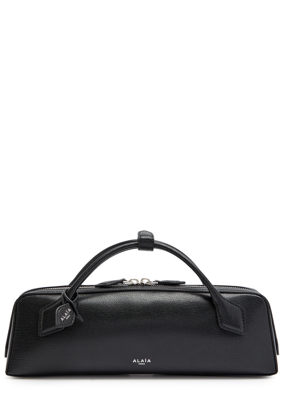 Info & Care Alaia grained leather clutch; Two top handles with press-stud fastening tab, metallic designer stamp, detachable designer tag, internal card slot, internal detachable designer-engraved mirror, fully lined Two-way zip fastening across top Size & Fit Width: 12.5 inches/ 31.5cm Height: 4 inches/ 10cm Depth: 2.5 inches/ 6.5cm Top handle drop: 2 inches/ 5cm Mirror dimensions: 8.5cm x 5.5cm