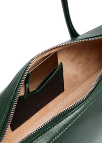 Info & Care Alaia ;glossed grained leather;shoulder bag; Two top handles with press-stud fastening tab, detachable designer tag, metallic designer stamp, internal card slot, internal detachable designer-engraved mirror, fully lined Two-way zip fastening across top Size & Fit Width: 13 inches/ 33cm Height: 4 inches/ 10cm Depth: 4 inches/ 10cm Top handle drop: 10 inches/ 25.5cm Mirror dimensions: 8.5cm x 5.5cm