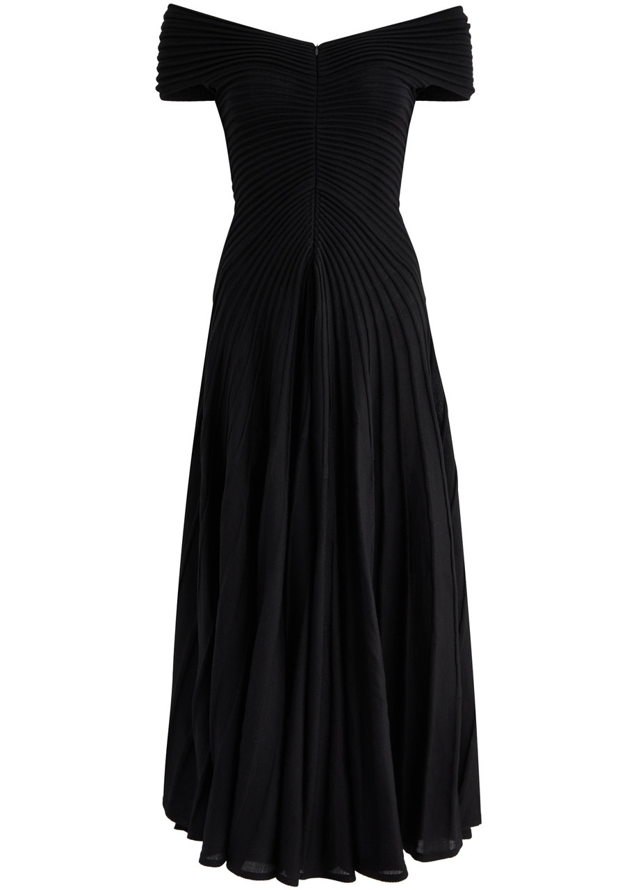 Alaïa Off-the-shoulder Ribbed Wool Midi Dress