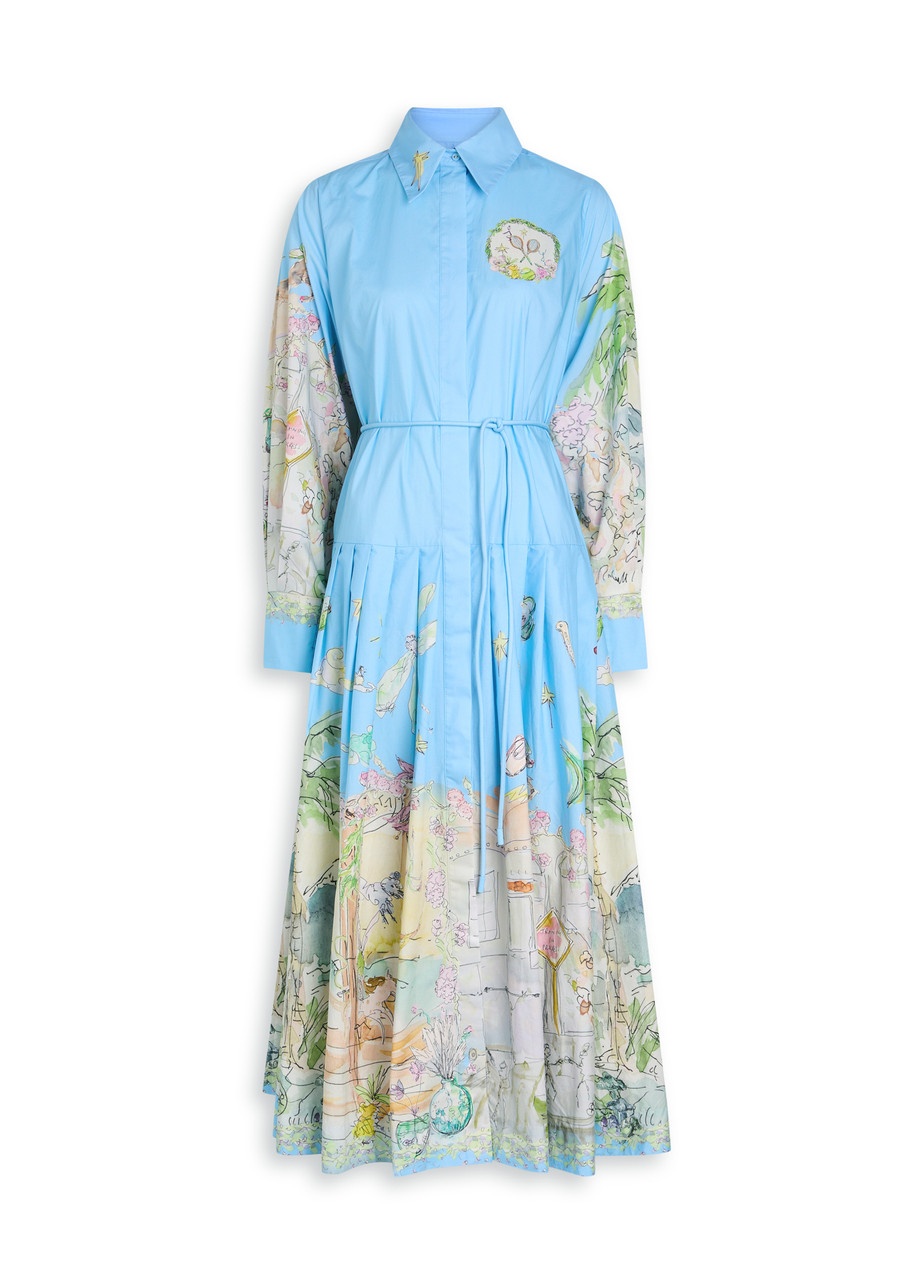 Info & Care Alemais cotton shirt dress Printed, smocked panel at button-fastening cuffs, belt loops, detachable tie-fastening belt, dropped waist, pleated skirt, box pleat at back; Concealed button fastenings through front; 100% organic cotton Hand wash Size & Fit Length shoulder to hem: 50 inches/ 127cm Midweight Regular fit bodice, loose fit through the skirt Model is 5'9"/ 175cm and wears a size;UK8