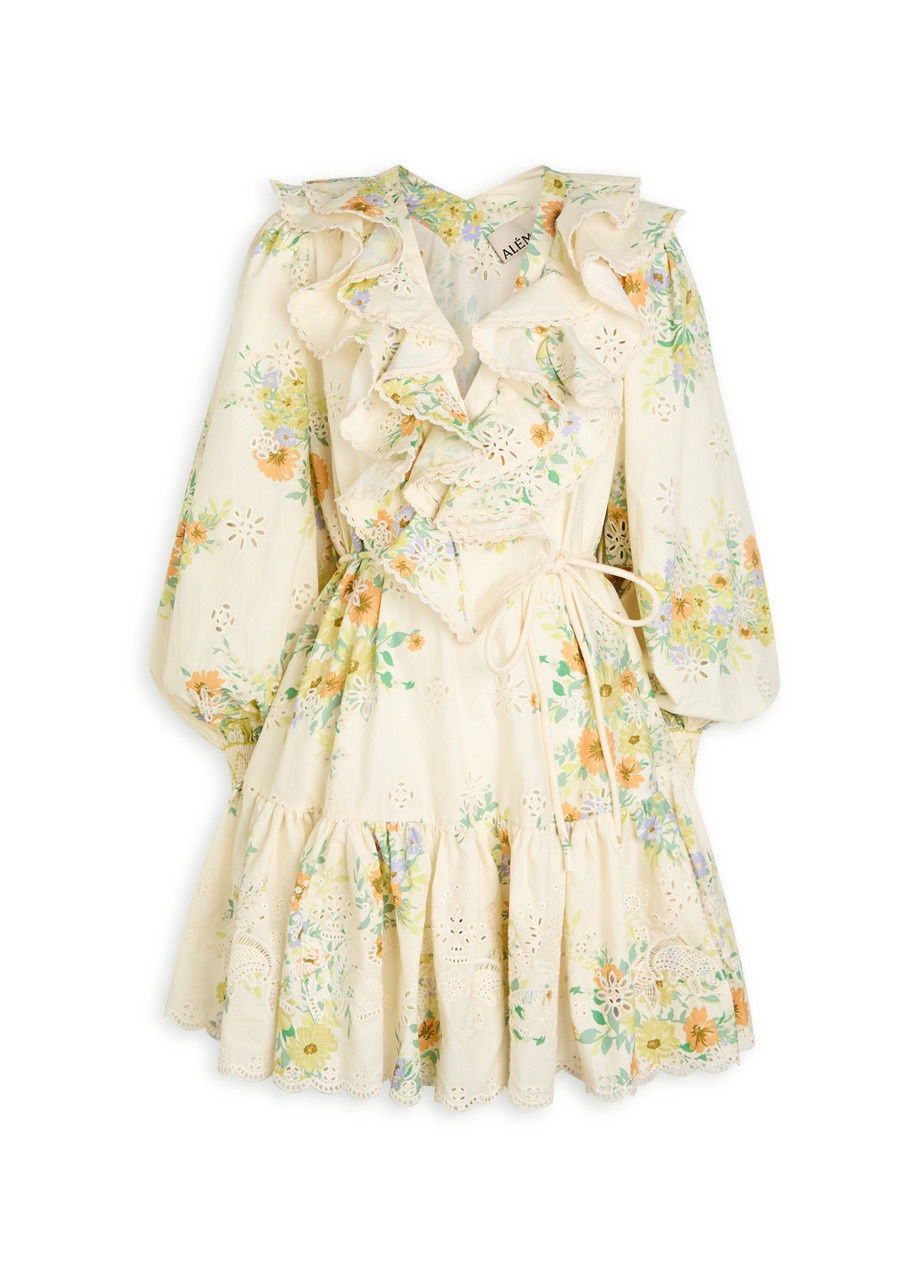 Info & Care Alemais cotton dress Floral-print, open-embroidery, V-neck, puff sleeves, smocked cuffs, belt loops, tie-fastening belt, gathered details at tiered skirt embroidered scalloped;trims Slips on 100% organic cotton Dry clean Size & Fit Length shoulder to hem: 33 inches/ 84cm Midweight Relaxed fit, use belt to cinch the waist; Model is 5'9"/ 175cm and wears a size small
