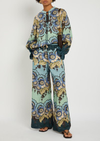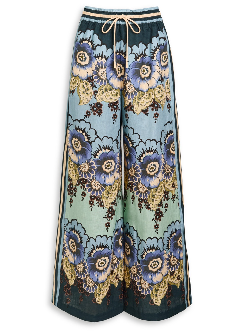 Info & Care Alemais flax trousers Floral print, drawstring at elasticated waist, side slip pockets, striped print at trims Pull on 100% European flax Machine wash; Size & Fit Inside leg length:;29 inches/ 73.5cm Midweight Wide-leg cut Model is 5'9"/ 175cm and wears a size;UK8