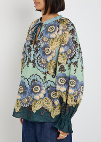 Info & Care Alemais ramie blouse Floral print, tie-fastening round-neck with notched detail, raglan balloon sleeves, elasticated cuffs with ruffled trims, pleated details, curved hem Slips on 100% ramie; Dry clean; Size & Fit Length shoulder to hem: 26 inches/ 66cm Midweight Cut for relaxed fit Model is 5'9"/ 175cm and wears a size;UK8;