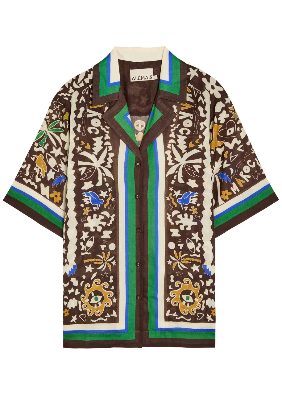 Info & Care Alemais woven shirt Printed, camp collar, stripes at trims Concealed button fastenings through front 100%;ramie Hand wash Coordinating item available; Size & Fit Length shoulder to hem: 29 inches/ 73.5cm Midweight Relaxed fit Model is 5'10"/ 178cm and wears a size;UK8