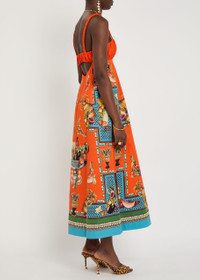Info & Care Alemais cotton-poplin dress Printed,;elasticated straps, sweetheart-neck, gathered bust, cut-out detail at back, partially lined Concealed hook and zip fastenings at;back 100% organic cotton Dry clean; Size & Fit Length shoulder to hem: 52 inches/ 132cm Midweight Loose fit, fitted at bust A-line cut Model is 5'9"/ 175cm and wears a size UK8