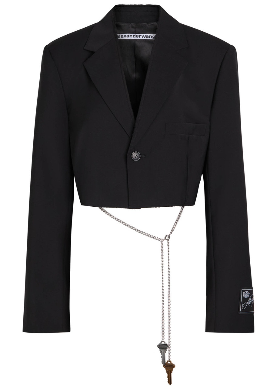 Alexander Wang Chain-embellished Cropped Wool-blend Blazer