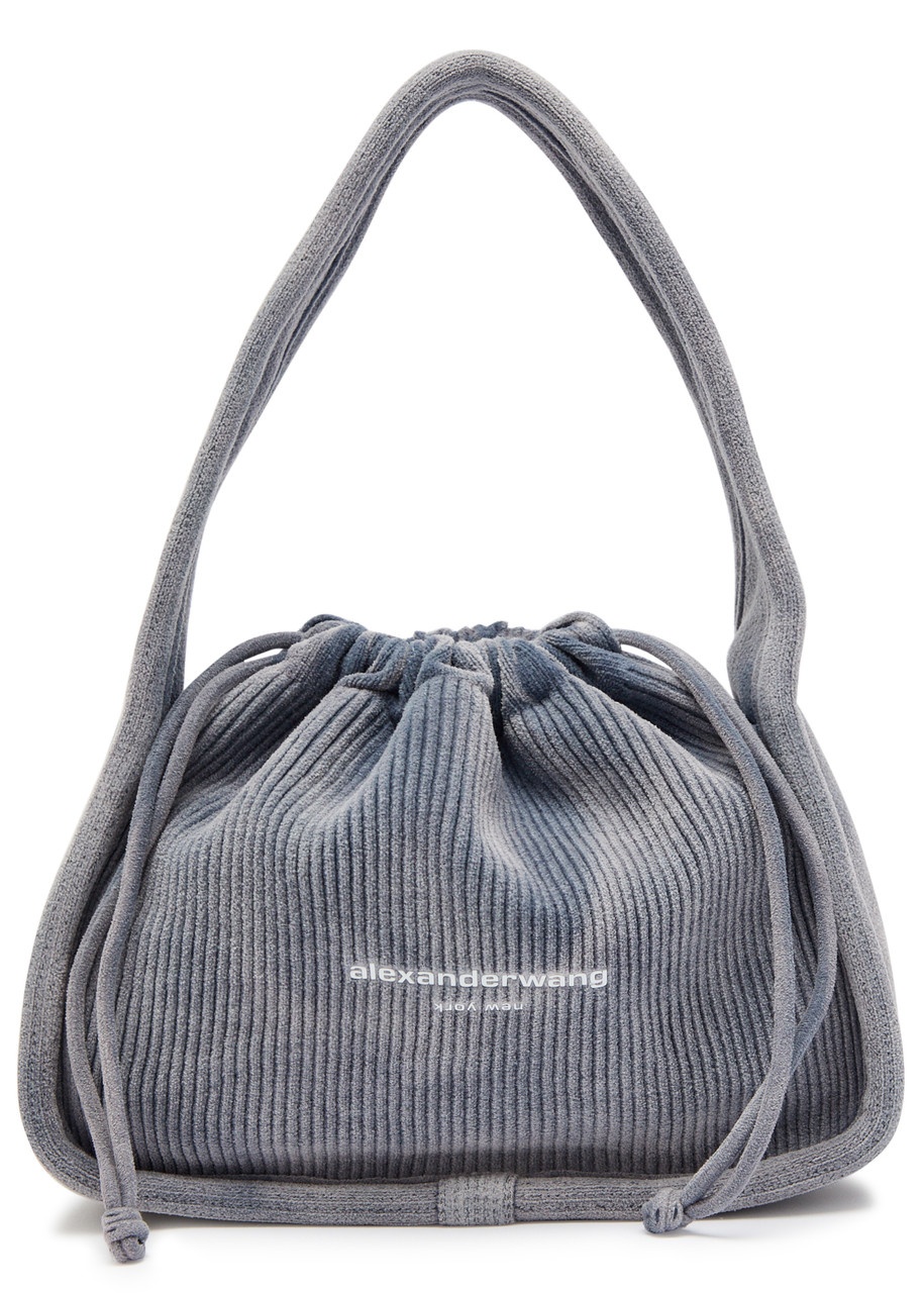 Info & Care Alexander Wang knit;top handle;bag Top handle, ribbed, designer plaque, slightly faded finish, internal card slot Drawstring fastening at top Size & Fit Width: 9 inches/ 23cm Height: 6.5 inches/ 16.5cm Depth: 2.5 inches/ 6.5cm Top handle drop: 6 inches/ 15.5cm