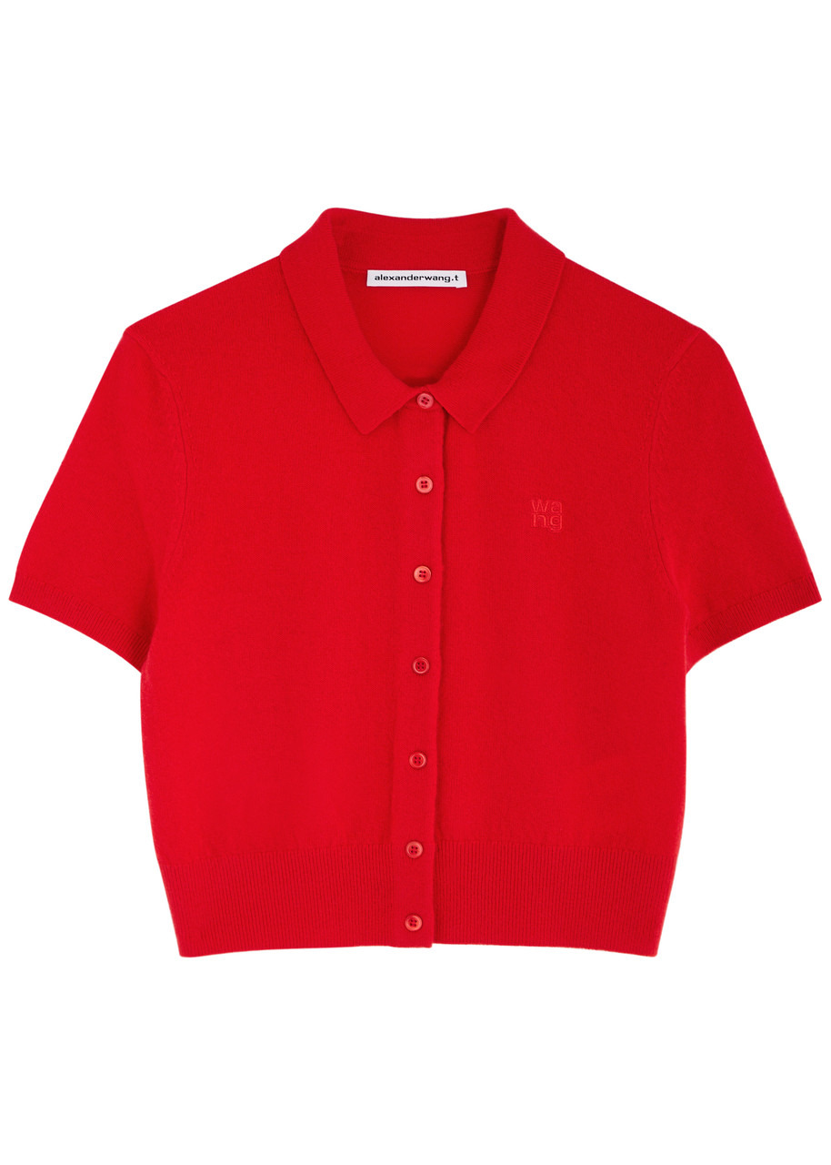 Alexanderwang.t Logo-embroidered Cropped Wool Cardigan