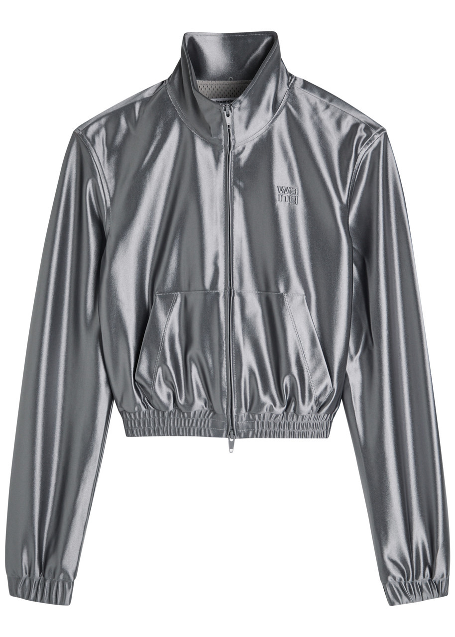 Alexanderwang.t Shrunken Logo-embossed Satin Track Jacket