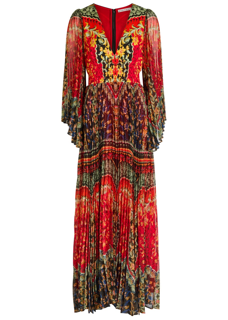 Alice + Olivia Bennett Floral-print Pleated Chiffon Maxi Dress