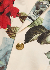 Info & Care Alice + Olivia linen-blend blazer Floral, notched lapels, padded shoulders, button-fastening cuffs, front slit pockets, back vent, internal button-fastening pocket, fully lined; Button fastening at front 56% linen, 43% viscose, 1% elastane; lining: 100% recycled polyester Dry clean Co-ordinating item available Size & Fit Length shoulder to hem: 27 inches/ 68.5cm Midweight Slim fit Model is 5'10"/ 178cm and wears a size;US4