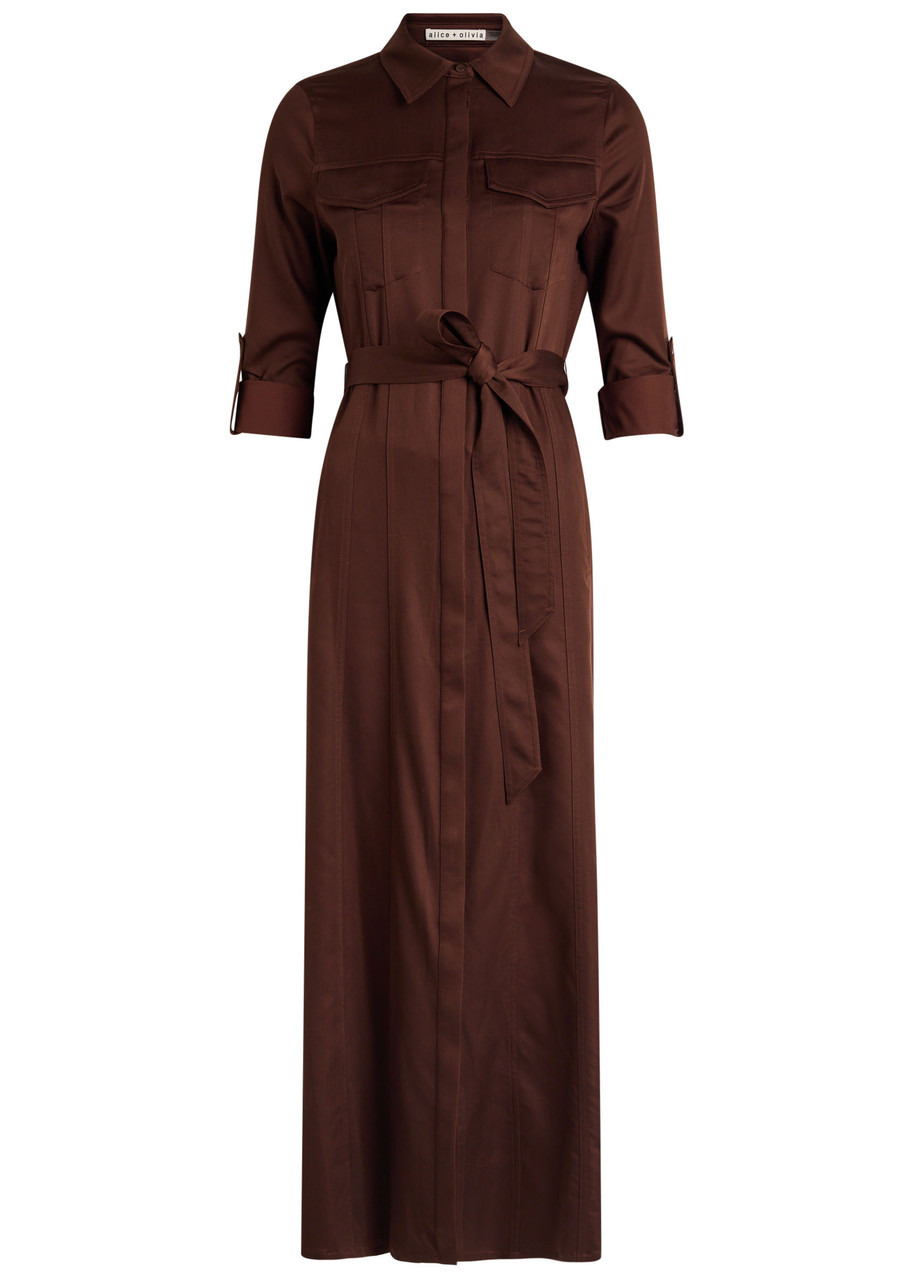 Alice + Olivia Chassidy Belted Stretch-twill Midi Shirt Dress