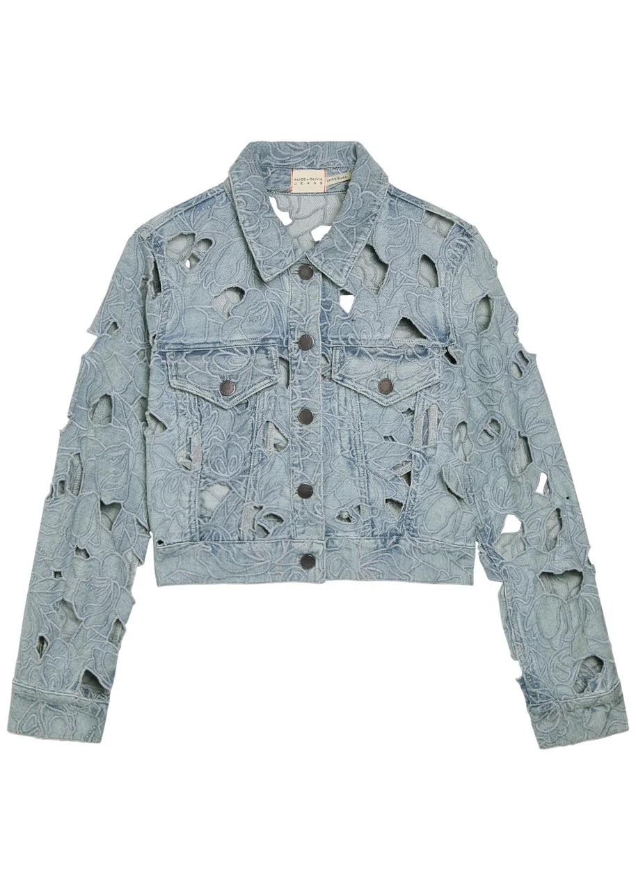 Alice + Olivia Chloe Embroidered Cut-out Denim Cropped Jacket