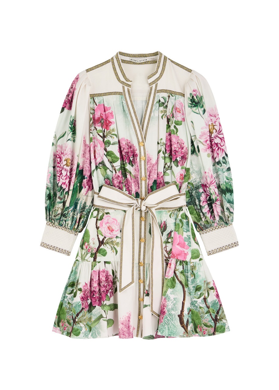 Alice + Olivia Cora Floral-print Stretch-cotton Mini Dress