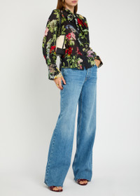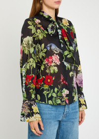 Info & Care Alice + Olivia cotton blouse Floral print, tie-fastening round neck, button-fastening cuffs, box pleat at back, curved hem Concealed button fastenings through front 100% cotton Dry clean Size & Fit Length shoulder to hem: 24 inches/ 61cm Midweight Loose fit Model is 5'9"/ 175cm and wears a size;US4
