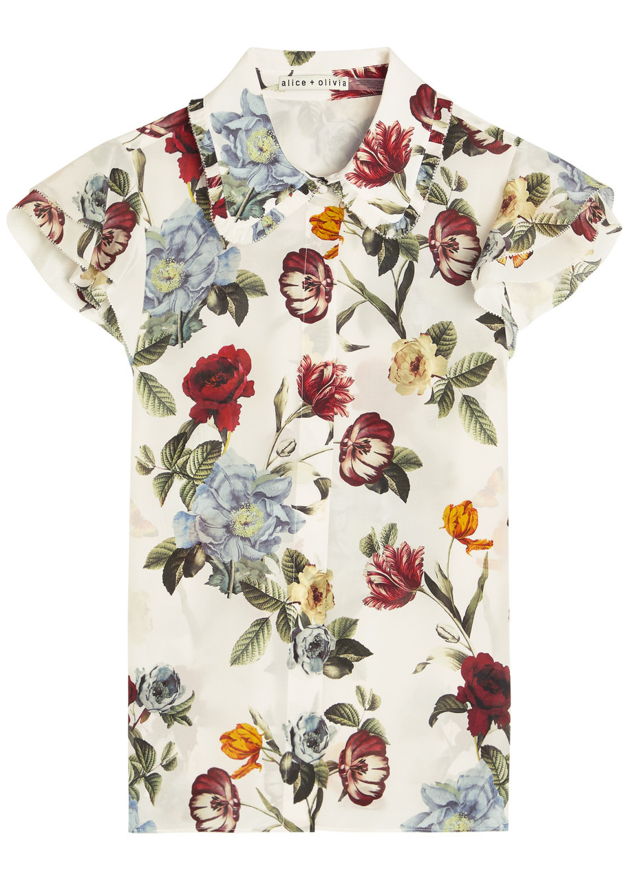 Alice + Olivia Martel Floral-print Silk-chiffon Blouse
