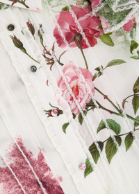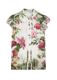 Info & Care Alice + Olivia silk blouse Floral printed, button-fastening neck,;tiered cap sleeves, ruffled and lace trims Button fastenings through front 100% silk Dry clean Size & Fit Length shoulder to hem: 24 inches/ 61cm Midweight Regular fit Model is 5'10"/ 178cm and wears a size small