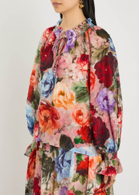 Info & Care Alice and Olivia cotton-blend blouse Floral print, tie-fastening high-neck, raglan sleeves, button fastenings at front, smocked trims,;curved hem Slips on 70% cotton, 30% silk Dry clean; Co-ordinating item available; Size & Fit Length shoulder to hem: 25 inches/ 63.5cm Midweight Loose fit Model is 5'9"/ 175cm and wears a size;small