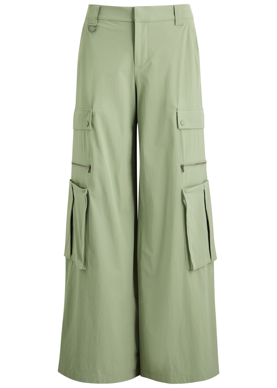 Info & Care Alice + Olivia shell cargo trousers Partially elasticated waist,;belt loops, D-ring embellishment, side slip pockets, four press-stud fastening patch pockets, four zip-fastening pockets Concealed hook and zip fastenings at front; 85% recycled nylon, 15% elastane; lining: 100% recycled polyester Machine wash Size & Fit Inside leg length: 33 inches/ 83.5cm Midweight Wide-leg cut Model is 5'10"/ 178cm and wears a size US4