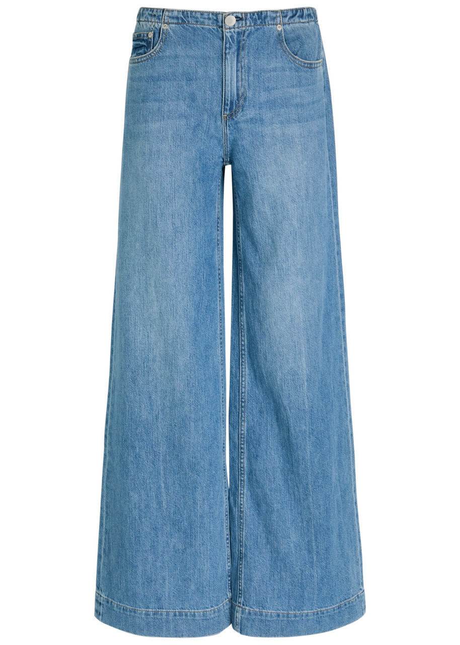 Info & Care Alice + Olivia denim jeans Low-rise fit, wide-leg cut, partially elasticated waist, belt loops, five pockets, designer-engraved hardware Partially concealed button and zip fastening at front 100% cotton Machine wash cold inside out to avoid colour transfer Size & Fit Front rise: 10 inches/ 25.5cm Inside leg length: 34 inches/ 86.5cm Midweight Model is 5'10"/ 178cm and wears a size;W27