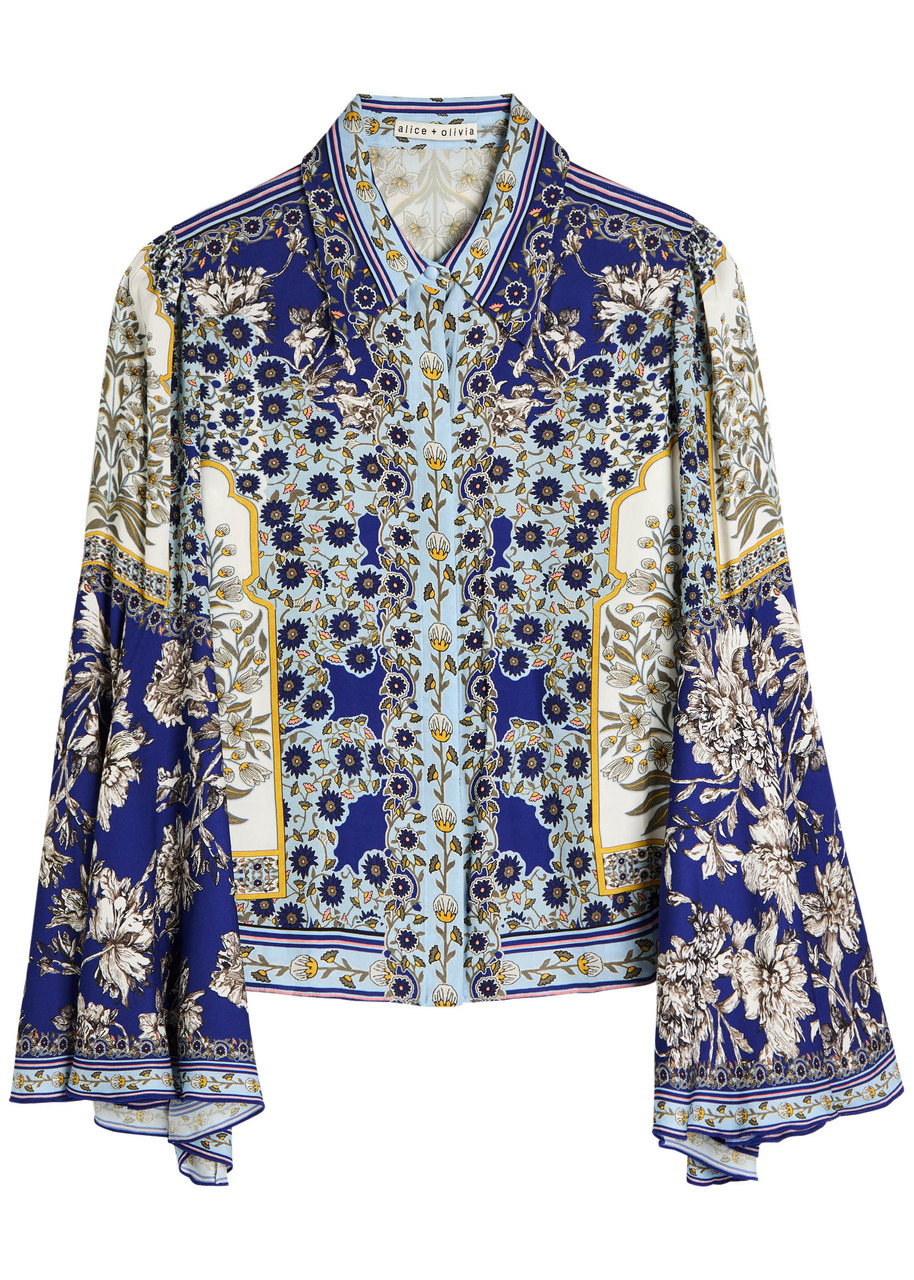 Alice + Olivia Willa Floral Flared-sleeve Chiffon Blouse