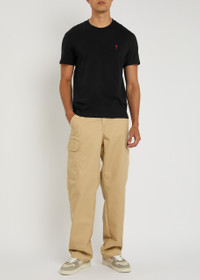 Info & Care AMI Paris cotton T-shirt; Ribbed crew-neck, embroidered Ami de Coeur logo at chest, logo embroidery at back; Slips on; 100% organic cotton; Machine wash; Size & Fit Length shoulder to hem: 27 inches/ 68.5cm; Midweight; Slightly relaxed fit; Model is 6'1"/ 186cm, chest size 38.5 inches and wears a size medium
