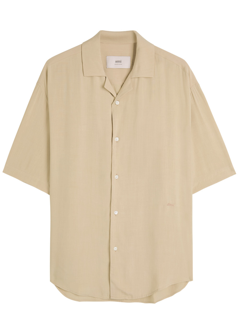 BEIGE AMI CAMP SHORT SLEEVED SHIRT