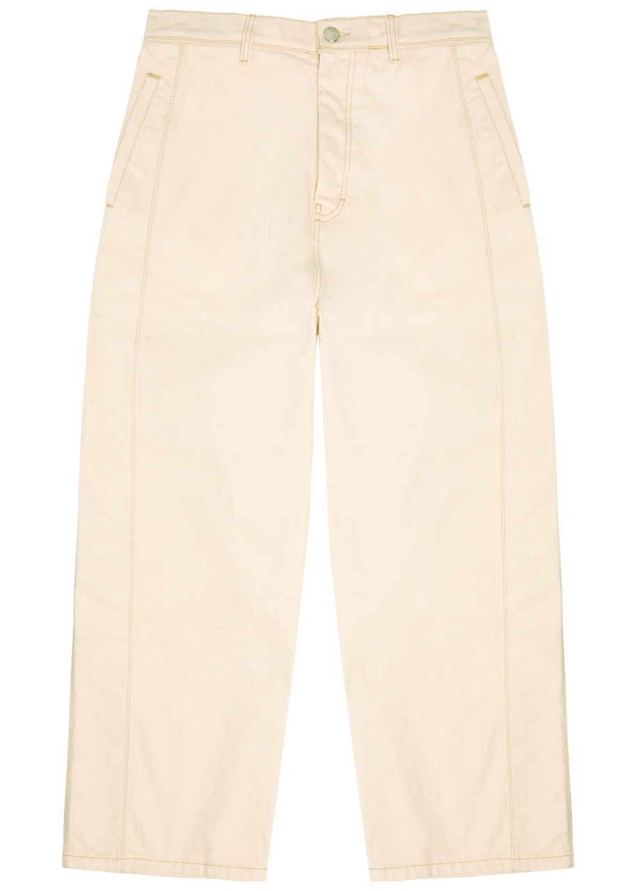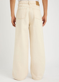 Info & Care AMI Paris denim jeans Mid-rise fit, wide-leg cut, belt loops, four pockets, panel through sides, designer plaque at back Partially concealed button fastenings at front 100% cotton Machine wash cold inside out to avoid colour transfer Size & Fit Front rise: 13.5 inches/ 34.5cm Inside leg length: 31 inches/ 79cm Heavyweight Model is 6'1"/ 185cm and wears a size W32